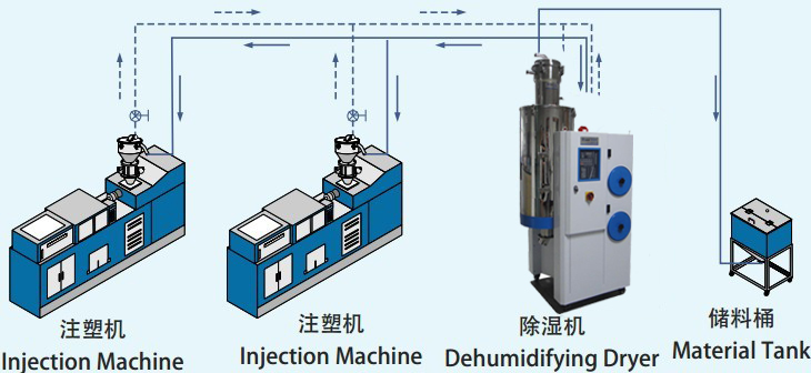 8、封閉式循環(huán)除濕及運(yùn)料系統(tǒng);