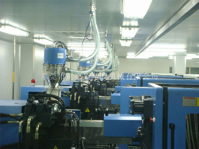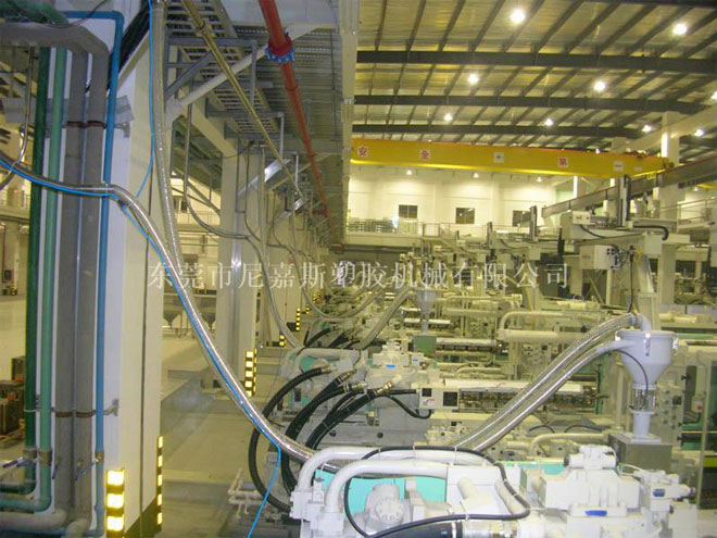 中央供料系統(tǒng)是根據客戶現場機臺的擺放情況對現場原料的用料情況,結合特有輔機設計備而設計的一種能夠實現集中供料、集中控制,從而實現全廠無人化不間斷成型作業(yè)的整體性解決方案。