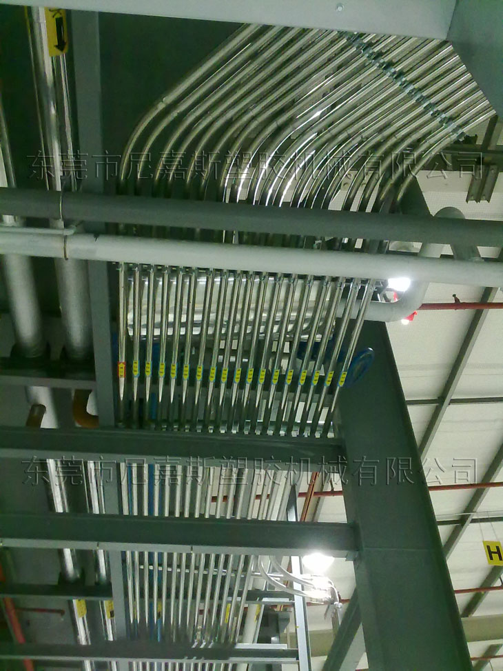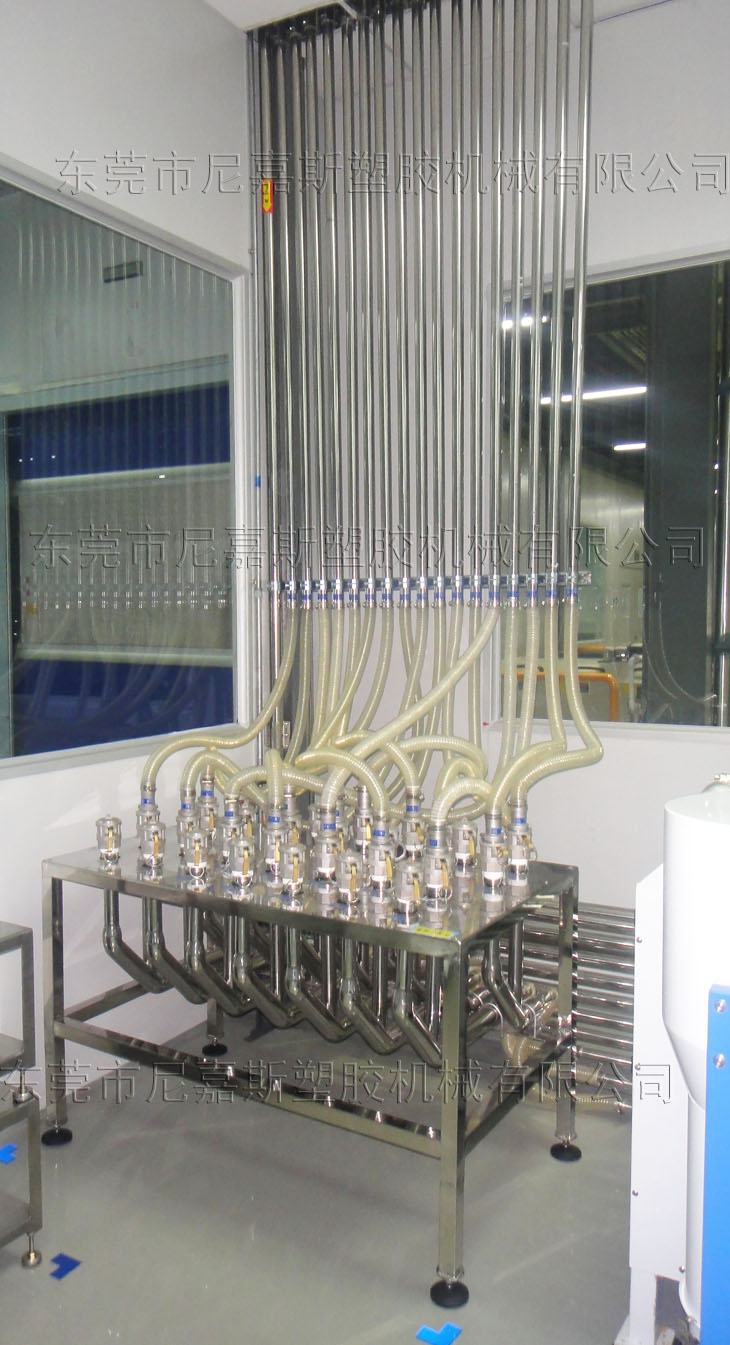 中央供料系統(tǒng)是根據(jù)客戶現(xiàn)場機(jī)臺(tái)的擺放情況對現(xiàn)場原料的用料情況,結(jié)合特有輔機(jī)設(shè)計(jì)備而設(shè)計(jì)的一種能夠?qū)崿F(xiàn)集中供料、集中控制,從而實(shí)現(xiàn)全廠無人化不間斷成型作業(yè)的整體性解決方案。