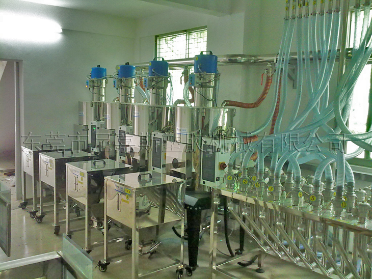 中央供料系統(tǒng)是根據(jù)客戶現(xiàn)場機臺的擺放情況對現(xiàn)場原料的用料情況,結(jié)合特有輔機設(shè)計備而設(shè)計的一種能夠?qū)崿F(xiàn)集中供料、集中控制,從而實現(xiàn)全廠無人化不間斷成型作業(yè)的整體性解決方案。
