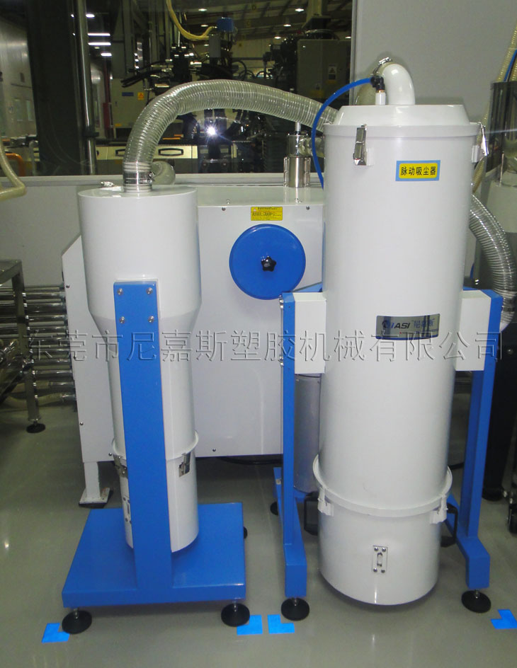 中央供料系統(tǒng)采用真空傳送方式,通過(guò)集中的管路系統(tǒng)將塑料原料從儲(chǔ)料罐輸送到中央除濕干燥系統(tǒng),然后將干燥后的原料輸送到每臺(tái)注塑機(jī)中。中央供料系統(tǒng)采用“一臺(tái)機(jī)器一根管”的設(shè)計(jì)方式,保證整個(gè)系統(tǒng)的空氣對(duì)原料進(jìn)行輸送,防止除濕干燥后的原料回潮。同時(shí)在每個(gè)輸運(yùn)行穩(wěn)定,絕無(wú)堵料的現(xiàn)象發(fā)生。它配合中央除濕干燥系統(tǒng)使用,可使用除濕干燥送循環(huán)后會(huì)對(duì)輸送管線進(jìn)行清理,確保管路內(nèi)沒(méi)有殘余的粒料,在避免原料回潮的同時(shí),也保證了加入注塑機(jī)中的原料性能的一致。在真空負(fù)壓作用下原料中原由的粉塵會(huì)通過(guò)粉塵過(guò)濾系統(tǒng)被過(guò)濾出來(lái),有助于提高成型產(chǎn)品的質(zhì)量。