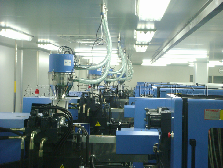 中央供料系統(tǒng)采用真空傳送方式,通過集中的管路系統(tǒng)將塑料原料從儲料罐輸送到中央除濕干燥系統(tǒng),然后將干燥后的原料輸送到每臺注塑機(jī)中。中央供料系統(tǒng)采用“一臺機(jī)器一根管”的設(shè)計(jì)方式,保證整個系統(tǒng)的空氣對原料進(jìn)行輸送,防止除濕干燥后的原料回潮。同時在每個輸運(yùn)行穩(wěn)定,絕無堵料的現(xiàn)象發(fā)生。它配合中央除濕干燥系統(tǒng)使用,可使用除濕干燥送循環(huán)后會對輸送管線進(jìn)行清理,確保管路內(nèi)沒有殘余的粒料,在避免原料回潮的同時,也保證了加入注塑機(jī)中的原料性能的一致。在真空負(fù)壓作用下原料中原由的粉塵會通過粉塵過濾系統(tǒng)被過濾出來,有助于提高成型產(chǎn)品的質(zhì)量。