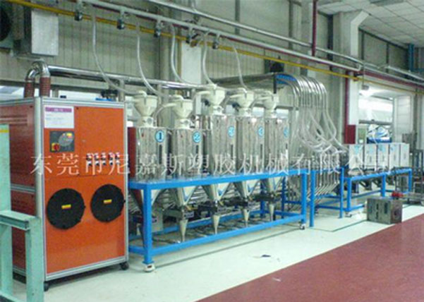 中央供料系統(tǒng)是根據(jù)客戶現(xiàn)場機臺的擺放情況對現(xiàn)場原料的用料情況,結(jié)合特有輔機設(shè)計備而設(shè)計的一種能夠?qū)崿F(xiàn)集中供料、集中控制,從而實現(xiàn)全廠無人化不間斷成型作業(yè)的整體性解決方案。