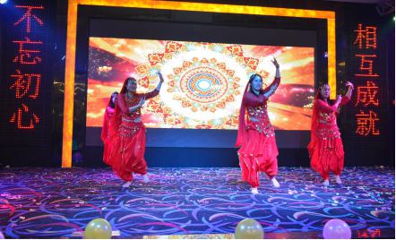 年會盛典在舞蹈《不如跳舞》中拉開了序幕,歡快的舞姿,明朗的節(jié)奏、交錯的光影,展現出尼嘉斯大家庭積極向上的朝氣,融入了對尼嘉斯更蓬勃的美好愿景。而將晚會氣氛推向高潮的,當屬由尼嘉斯人自導自演的《阿拉伯之夜》,驚艷全場。