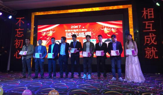 伴隨著一首首動聽的音樂和一段段熱情的舞蹈,晚會盛典進入了最火熱得頒獎環(huán)節(jié),獎項由企業(yè)管理高層頒發(fā)。獎項包括“年度優(yōu)秀組長”、“年度優(yōu)秀主管”、“新人將”、“最佳銷售獎”、“年度忠誠獎”等等。一個個大獎,正是尼嘉斯對各位優(yōu)秀的伙伴和團隊的認可和鼓勵。他們以兢兢業(yè)業(yè)的工作態(tài)度、值得信賴的實力,在各自的崗位上奉獻著力量,才有了尼嘉斯的卓越追求和高效運營,才有了尼嘉斯2017年的輝煌成就!