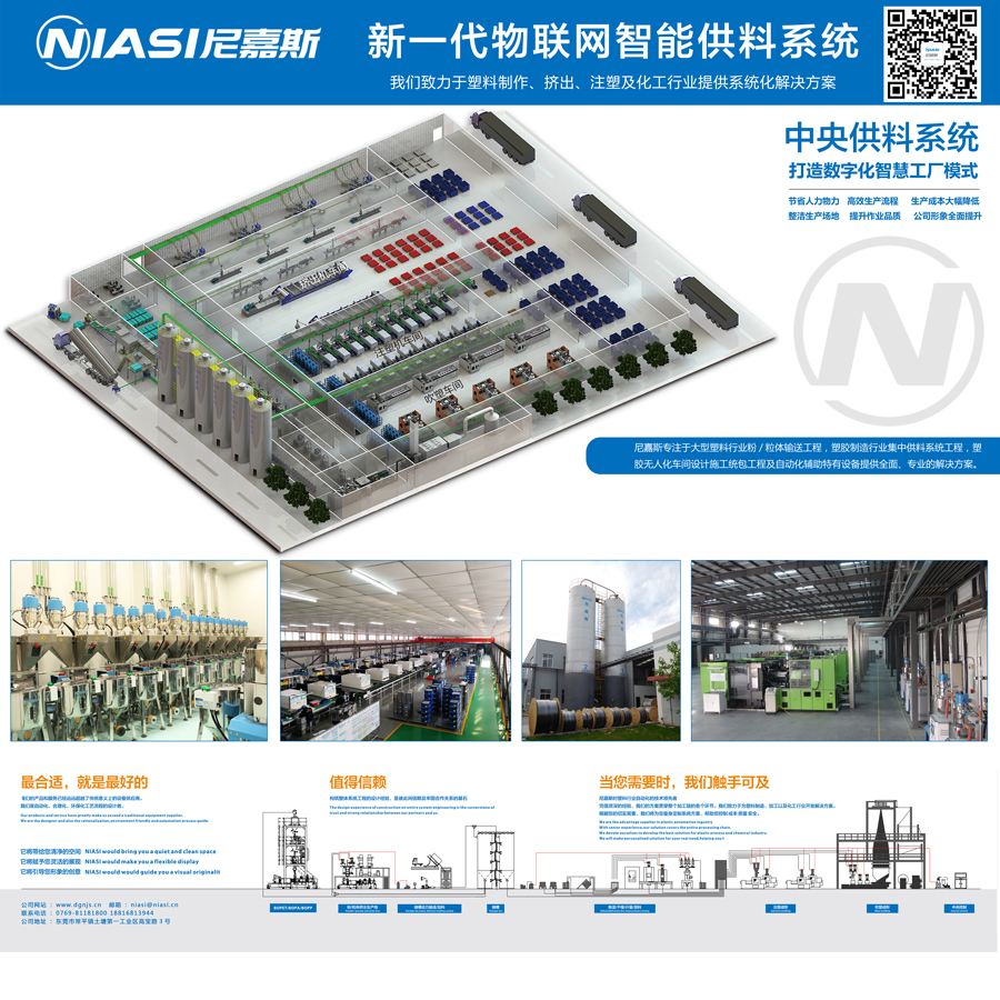 作為自動(dòng)化、合理化、環(huán);乃芰现圃旃に嚵鞒痰脑O(shè)計(jì)者,尼嘉斯一直致力于為大型塑料行業(yè)粉/粒體輸送工程、塑膠制造行業(yè)集中供料系統(tǒng)工程、塑膠無(wú)人化車間設(shè)計(jì)施工統(tǒng)包工程及自動(dòng)化輔助特有設(shè)備提供全面、專業(yè)的解決方案。